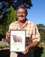![]() Barend Dorfling, een van Namibia se mees ervare Interrasbeoordelaars is erken as Senior Beoordelaars van Santa Gertrudis Beeste deur die Santa Gertrudis Beestelers Genootskap van Namibia. Hierdie toekenning is aan Barend toegeken gedeurende n' keurings standaarde werkswinkel wat gehou is op plaas Wonderboom van Mc en Nadien Human in die Gobabis Distrik. |